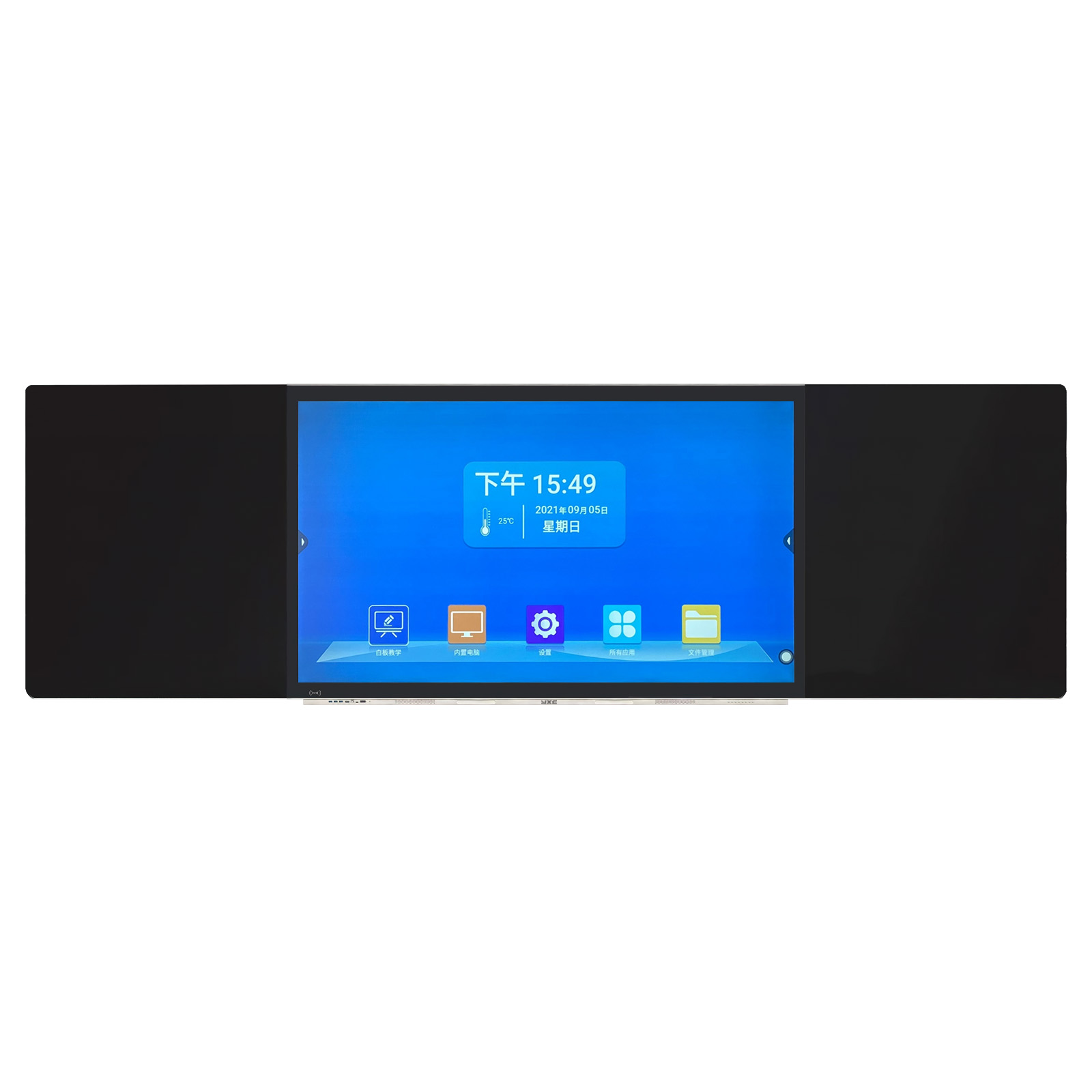 一、整機(jī): 1、 整機(jī)采用一體化設(shè)計(jì),正面顯示為一個(gè)由三塊拼接而成的平面普通黑板,可實(shí)現(xiàn)整塊黑板統(tǒng)一屏幕書(shū)寫(xiě)。中間區(qū)域?yàn)長(zhǎng)ED液晶顯示屏幕,防眩光鋼化玻璃。 2、 左右側(cè)書(shū)寫(xiě)板采用高抗反光納米材料,實(shí)現(xiàn)無(wú)反光效果,在任何角度均可清晰可見(jiàn)書(shū)寫(xiě)筆跡。 3、 整機(jī)尺寸:長(zhǎng)≥4200mm、高≥1200mm、厚≦110mm,中間區(qū)域屏幕采用86英寸 LED 液晶屏,顯示比例16:9,具備防眩光效果。 4、 前置按鍵和接口,按鍵:電源,護(hù)眼,設(shè)置,音量+,音量-,圖像比例,錄屏,觸摸開(kāi)關(guān)。 5、 前置接口:HDMI*1,Touch USB*1,USB*3,Type-C*1。 6、 側(cè)置輸入接口:HDMI*2,USB*2,VGA+AUDIO*1,YPBPR*1,AV*1,TF*1,RJ45*1,RS232*1; 7、 側(cè)置輸出接口:TOUCH USB*1,耳機(jī)*1,AV*1,同軸*1。 8、 整機(jī)具備前置OPS電腦系統(tǒng)一鍵還原隱藏式針孔按鈕,方便解決電腦系統(tǒng)故障。 9、 具備智能感光模塊,可根據(jù)環(huán)境光調(diào)節(jié)屏幕亮度。 10、 具備前置兩個(gè)書(shū)寫(xiě)筆磁吸凹槽,書(shū)寫(xiě)筆可吸附在凹槽內(nèi)。 11、 具有前置錄屏功能按鍵,可將主機(jī)中的課件、音頻和環(huán)境聲音同時(shí)錄制。 12、 內(nèi)置音箱:≥2*15W前置全頻揚(yáng)聲器。 13、 整機(jī)內(nèi)置安卓嵌入式系統(tǒng),不低于Android 8.0版本;機(jī)身內(nèi)存不低于32G ROM,運(yùn)行內(nèi)存不低于3G RAM。 14、 具有五指手勢(shì)息屏及五指手勢(shì)屏幕喚醒功能。 15、 自持自定義設(shè)置開(kāi)、關(guān)機(jī)時(shí)間。 16、 具備硬件系統(tǒng)檢測(cè)功能,對(duì)系統(tǒng)主板型號(hào)、內(nèi)存、存儲(chǔ)、CPU、系統(tǒng)軟件版本、觸控單元、OPS 模塊、光感、網(wǎng)絡(luò)等提供狀態(tài)提示信息。 17、 支持本機(jī)APP軟件管理,包括強(qiáng)制停止、卸載。 18、 內(nèi)置手機(jī)投屏軟件,可進(jìn)行手機(jī)投屏。 19、 具備鎖屏功能,可設(shè)置密碼解鎖、手勢(shì)解鎖,USB KEY解鎖。 20、 具備APP鎖定功能,可鎖定內(nèi)置任意APP,有效管控APP的使用。 二、觸摸與顯示系統(tǒng): 1、 液晶顯示屏幕采用工業(yè)級(jí)A規(guī)液晶面板,圖像分辨率≥3840*2160;亮度≥350cd/㎡;可視角度≥178°。 2、 采用先進(jìn)納米電容觸控技術(shù),觸摸模式:支持HID免驅(qū)技術(shù),無(wú)需安裝驅(qū)動(dòng)即可以實(shí)現(xiàn)多人同時(shí)書(shū)寫(xiě)與操作功能,支持20點(diǎn)觸控。 三、內(nèi)置插拔式電腦: 1、 采用模塊化電腦方案,標(biāo)準(zhǔn)80針OPS-C電腦接口,外部無(wú)任何連線,方便老師使用與維護(hù)。 2、 處理器:Intel Core i5或以上 CPU;內(nèi)存規(guī)格:≥8G內(nèi)存;硬盤(pán):≥256G 固態(tài)硬盤(pán)。 3、 顯卡:集成高清顯卡。 4、 網(wǎng)卡類(lèi)型:1個(gè)千兆網(wǎng)卡Gigabit LAN。 5、 聲卡:集成6聲道音效 四、電子白板軟件 1、 屏幕鎖定功能:可直接通過(guò)軟件實(shí)現(xiàn)一鍵鎖定、一鍵開(kāi)啟觸摸功能,防止誤操作。 2、 筆功能:提供鉛筆、軟筆、毛筆、紋理筆、半透明筆、對(duì)象筆、智能筆、彩筆等筆型,并提供多種線型,粗細(xì),顏色,透明度等屬性設(shè)置 3、 擦除功能:提供對(duì)象擦、位圖擦、圖片擦,清除頁(yè)面等擦除方式。 4、 圖形繪制:可實(shí)現(xiàn)圖形的快速繪制,包含直線、矩形、橢圓、圓、三角形、五邊形、五角星形、六邊形、箭頭、立方體、圓柱體、圓錐、三棱錐、四棱錐等,方便用戶(hù)快速的創(chuàng)建標(biāo)準(zhǔn)的圖形。。 5、 輔助工具:提供放大鏡、直尺、圓規(guī)、直角尺、量角器、錄制、攝像頭、填色桶、探照燈、遮幕、數(shù)學(xué)輸入法、漢字筆畫(huà)等常用工具。 6、 頁(yè)面功能:可提供白板頁(yè)、屏幕頁(yè); 7、 透明頁(yè)標(biāo)注:可對(duì)電腦頁(yè)面進(jìn)行書(shū)寫(xiě)、批注。 8、 頁(yè)面操作:支持對(duì)頁(yè)面的整體放大、縮小、漫游、翻頁(yè)等,其中漫游功能支持對(duì)書(shū)寫(xiě)頁(yè)面的無(wú)限放大和移動(dòng)。 9、 直接調(diào)用外部攝像頭視頻;與數(shù)影儀(高拍儀)、具備準(zhǔn)攝像頭接口的視頻展臺(tái)完美結(jié)合,一鍵調(diào)用。 10、 手寫(xiě)識(shí)別,支持手寫(xiě)體直接轉(zhuǎn)為印刷體,并實(shí)現(xiàn)快速注音。 11、 插入對(duì)象:圖片支持PNG/BMP/JPG等格式的插入;音頻支持MP3/WAVC等格式的插入;視頻支持MP4/WMV/MPG/RMVB/AS等格式的插入;支持WORD\EXCEL\PPT等文件的插入。 12、 雙屏?xí)鴮?xiě):具有雙屏?xí)鴮?xiě)功能 13、 軟件升級(jí):軟件提供終身免費(fèi)升級(jí)服務(wù)。 |