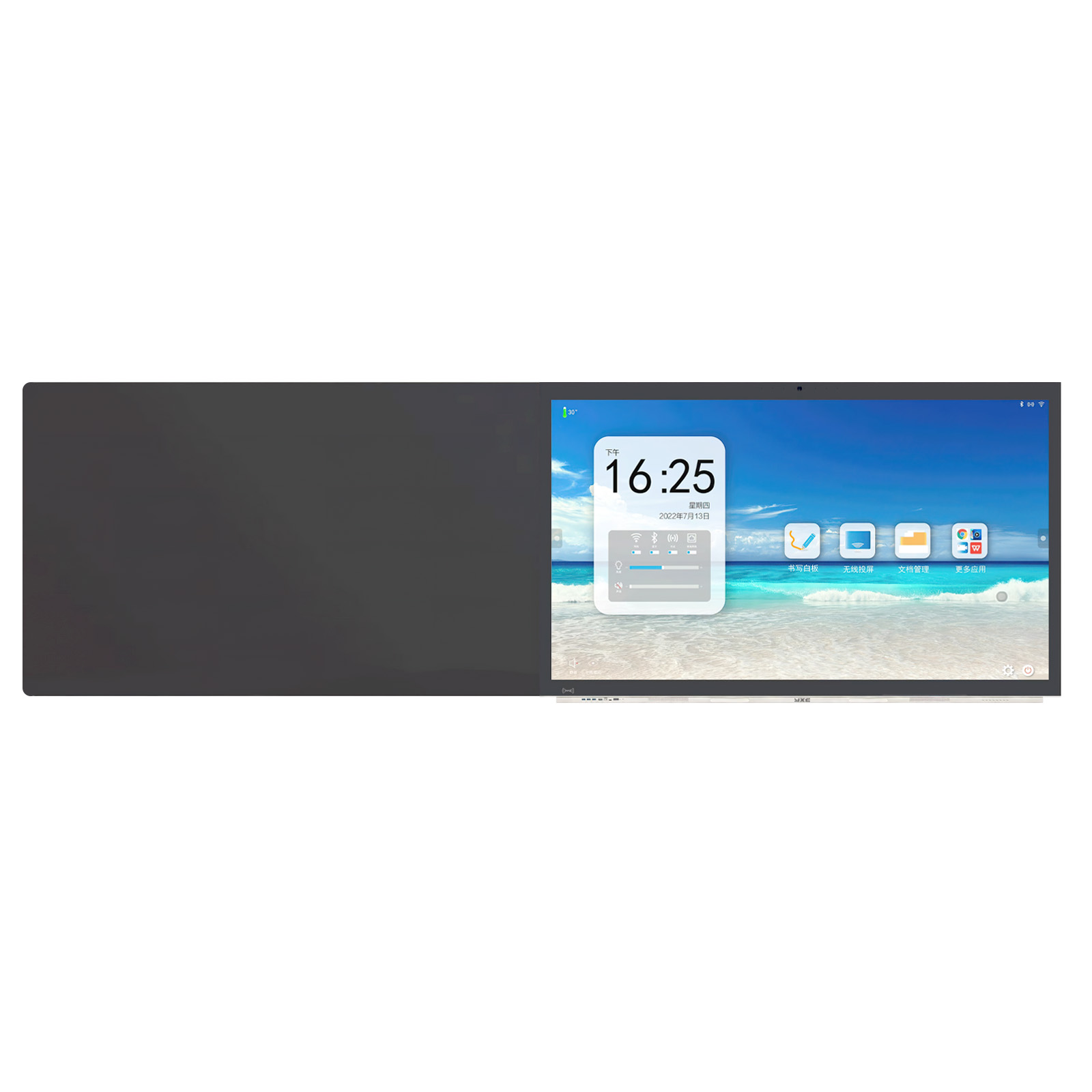 一、整機(jī): 1、 整機(jī)采用一體化設(shè)計(jì),正面顯示為一個(gè)由2塊拼接而成的平面普通黑板,可實(shí)現(xiàn)整塊黑板統(tǒng)一屏幕書(shū)寫(xiě)。左側(cè)或右側(cè)區(qū)域?yàn)長(zhǎng)ED液晶顯示屏幕,防眩光鋼化玻璃。 2、 左右側(cè)書(shū)寫(xiě)板采用高抗反光納米材料,實(shí)現(xiàn)無(wú)反光效果,在任何角度均可清晰可見(jiàn)書(shū)寫(xiě)筆跡。 3、 整機(jī)尺寸:長(zhǎng)≥4200mm、高≥1200mm、厚≦110mm,中間區(qū)域屏幕采用86英寸 LED 液晶屏,顯示比例16:9,具備防眩光效果。 4、 前置按鍵和接口,按鍵:電源,護(hù)眼,設(shè)置,音量+,音量-,圖像比例,錄屏,觸摸開(kāi)關(guān)。 5、 前置接口:HDMI*1,Touch USB*1,USB*3,Type-C*1。 6、 側(cè)置輸入接口:HDMI*2,USB*2,VGA+AUDIO*1,YPBPR*1,AV*1,TF*1,RJ45*1,RS232*1; 7、 側(cè)置輸出接口:TOUCH USB*1,耳機(jī)*1,AV*1,同軸*1。 8、 整機(jī)具備前置OPS電腦系統(tǒng)一鍵還原隱藏式針孔按鈕,方便解決電腦系統(tǒng)故障。 9、 具備智能感光模塊,可根據(jù)環(huán)境光調(diào)節(jié)屏幕亮度。 10、 具備前置兩個(gè)書(shū)寫(xiě)筆磁吸凹槽,書(shū)寫(xiě)筆可吸附在凹槽內(nèi)。 11、 具有前置錄屏功能按鍵,可將主機(jī)中的課件、音頻和環(huán)境聲音同時(shí)錄制。 12、 內(nèi)置音箱:≥2*15W前置全頻揚(yáng)聲器。 13、 內(nèi)置1400 萬(wàn) COMS高清攝像機(jī),嵌入式設(shè)計(jì)與觸屏同平面,滿足交互式教學(xué)需要; 14、 內(nèi)置8陣列拾音麥克風(fēng)系統(tǒng),滿足視頻會(huì)議系統(tǒng)交互功能,采集范圍≥8米。 15、 整機(jī)內(nèi)置安卓嵌入式系統(tǒng),不低于Android 8.0版本;機(jī)身內(nèi)存不低于32G ROM,運(yùn)行內(nèi)存不低于3G RAM。 16、 具有五指手勢(shì)息屏及五指手勢(shì)屏幕喚醒功能。 17、 自持自定義設(shè)置開(kāi)、關(guān)機(jī)時(shí)間。 18、 具備硬件系統(tǒng)檢測(cè)功能,對(duì)系統(tǒng)主板型號(hào)、內(nèi)存、存儲(chǔ)、CPU、系統(tǒng)軟件版本、觸控單元、OPS 模塊、光感、網(wǎng)絡(luò)等提供狀態(tài)提示信息。 19、 支持本機(jī)APP軟件管理,包括強(qiáng)制停止、卸載。 20、 內(nèi)置手機(jī)投屏軟件,可進(jìn)行手機(jī)投屏。 21、 具備鎖屏功能,可設(shè)置密碼解鎖、手勢(shì)解鎖,USB KEY解鎖。 22、 具備APP鎖定功能,可鎖定內(nèi)置任意APP,有效管控APP的使用。 二、觸摸與顯示系統(tǒng): 1、液晶顯示屏幕采用工業(yè)級(jí)A規(guī)液晶面板,圖像分辨率≥3840*2160;亮度≥350cd/㎡;可視角度≥178°。 2、采用先進(jìn)納米電容觸控技術(shù),觸摸模式:支持HID免驅(qū)技術(shù),無(wú)需安裝驅(qū)動(dòng)即可以實(shí)現(xiàn)多人同時(shí)書(shū)寫(xiě)與操作功能,支持20點(diǎn)觸控。 三、內(nèi)置插拔式電腦: 1、 采用模塊化電腦方案,標(biāo)準(zhǔn)80針OPS-C電腦接口,外部無(wú)任何連線,方便老師使用與維護(hù)。 2、 處理器:Intel Core i5或以上 CPU;內(nèi)存規(guī)格:≥8G內(nèi)存;硬盤(pán):≥256G 固態(tài)硬盤(pán)。 3、 顯卡:集成高清顯卡。 4、 網(wǎng)卡類(lèi)型:1個(gè)千兆網(wǎng)卡Gigabit LAN。 5、 聲卡:集成6聲道音效 四、電子白板軟件 1、屏幕鎖定功能:可直接通過(guò)軟件實(shí)現(xiàn)一鍵鎖定、一鍵開(kāi)啟觸摸功能,防止誤操作。 2、筆功能:提供鉛筆、軟筆、毛筆、紋理筆、半透明筆、對(duì)象筆、智能筆、彩筆等筆型,并提供多種線型,粗細(xì),顏色,透明度等屬性設(shè)置 3、擦除功能:提供對(duì)象擦、位圖擦、圖片擦,清除頁(yè)面等擦除方式。 4、圖形繪制:可實(shí)現(xiàn)圖形的快速繪制,包含直線、矩形、橢圓、圓、三角形、五邊形、五角星形、六邊形、箭頭、立方體、圓柱體、圓錐、三棱錐、四棱錐等,方便用戶快速的創(chuàng)建標(biāo)準(zhǔn)的圖形。。 5、輔助工具:提供放大鏡、直尺、圓規(guī)、直角尺、量角器、錄制、攝像頭、填色桶、探照燈、遮幕、數(shù)學(xué)輸入法、漢字筆畫(huà)等常用工具。 6、頁(yè)面功能:可提供白板頁(yè)、屏幕頁(yè); 7、透明頁(yè)標(biāo)注:可對(duì)電腦頁(yè)面進(jìn)行書(shū)寫(xiě)、批注。 8、頁(yè)面操作:支持對(duì)頁(yè)面的整體放大、縮小、漫游、翻頁(yè)等,其中漫游功能支持對(duì)書(shū)寫(xiě)頁(yè)面的無(wú)限放大和移動(dòng)。 9、直接調(diào)用外部攝像頭視頻;與數(shù)影儀(高拍儀)、具備準(zhǔn)攝像頭接口的視頻展臺(tái)完美結(jié)合,一鍵調(diào)用。 10、手寫(xiě)識(shí)別,支持手寫(xiě)體直接轉(zhuǎn)為印刷體,并實(shí)現(xiàn)快速注音。 11、插入對(duì)象:圖片支持PNG/BMP/JPG等格式的插入;音頻支持MP3/WAVC等格式的插入;視頻支持MP4/WMV/MPG/RMVB/AS等格式的插入;支持WORD\EXCEL\PPT等文件的插入。 12、雙屏?xí)鴮?xiě):具有雙屏?xí)鴮?xiě)功能 13、軟件升級(jí):軟件提供終身免費(fèi)升級(jí)服務(wù)。 |