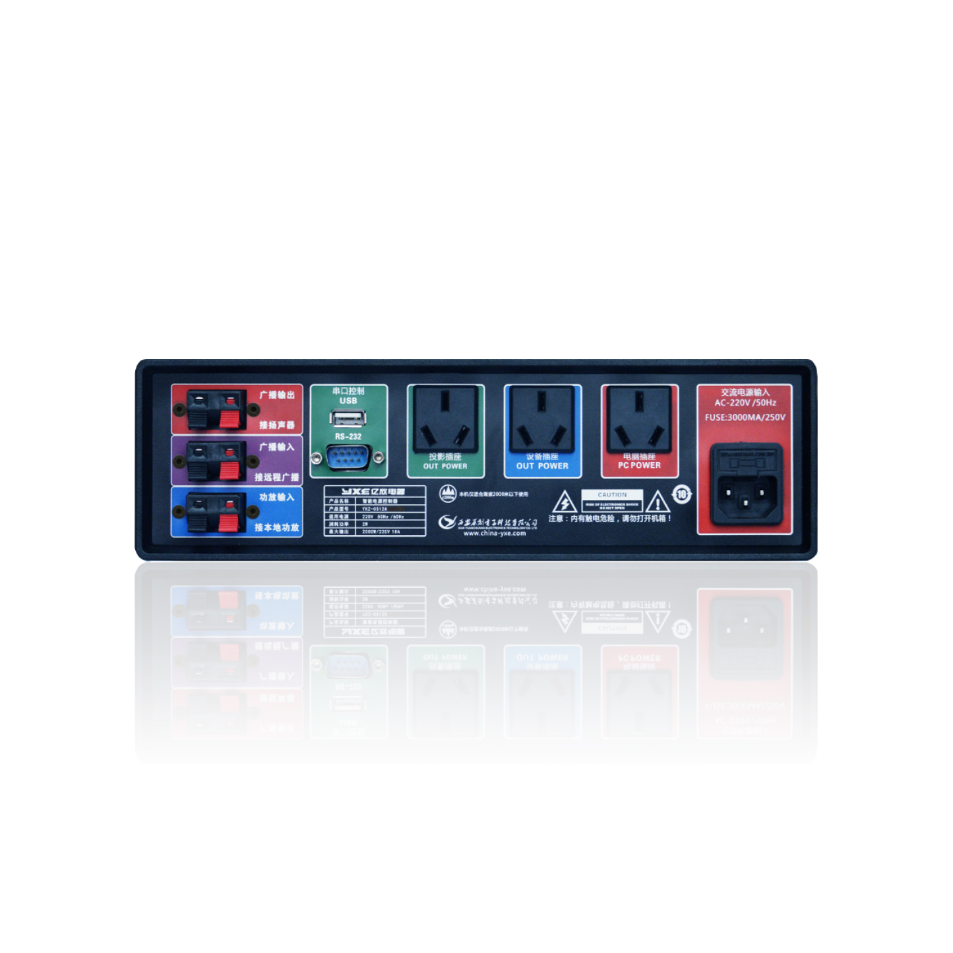 受控于調(diào)音臺(tái)、多媒體電腦、音視頻工作站及錄播系統(tǒng)主機(jī)等核心設(shè)備; 2. 內(nèi)置正版智能電源控制程序。 3. 主機(jī)啟動(dòng)時(shí)接收開機(jī)指令,控制后端設(shè)備交流電源開啟; 4. 主機(jī)關(guān)閉時(shí)接收關(guān)機(jī)命令,關(guān)閉后端設(shè)備交流電源關(guān)閉; 5. Windows操作系統(tǒng)免驅(qū)動(dòng),即插即用; 6. 具備防浪涌功能,避免浪涌對(duì)后端設(shè)備電源沖擊; 7. 自動(dòng)信號(hào)檢測(cè)功能實(shí)現(xiàn)教室內(nèi)多媒體擴(kuò)聲和校園廣播信號(hào)擴(kuò)聲,并且系統(tǒng)在兩者間能自動(dòng)切換; 8. 教室內(nèi)斷電或教室功放關(guān)閉時(shí)自動(dòng)切換至播出校園廣播信號(hào),確保聽力考試等重要用途不受影響; 9. 可自動(dòng)控制投影機(jī)交流電源,并對(duì)投影機(jī)執(zhí)行散熱后智能切斷交流電源,避免誤操作造成的燈泡損壞,延長(zhǎng)投影機(jī)使用壽命; 10. 具備視頻切換功能,一鍵切換投影機(jī)視頻輸入; 11. 具備手動(dòng)控制功能,當(dāng)主機(jī)出現(xiàn)故障時(shí),后端設(shè)備仍可正常啟動(dòng)及關(guān)閉; 12. 具備遠(yuǎn)程控制功能,可在校園廣播中作為緊急廣播遠(yuǎn)程控制功放電源; 13. 手動(dòng)及自動(dòng)控制面板LED指示燈,方便查看工作狀態(tài); 14. 內(nèi)置程序編輯接口,可按客戶需要進(jìn)行程序開發(fā),滿足客戶定制功能需要; 15. 控制電流220V/10A,可控制高功率設(shè)備; |